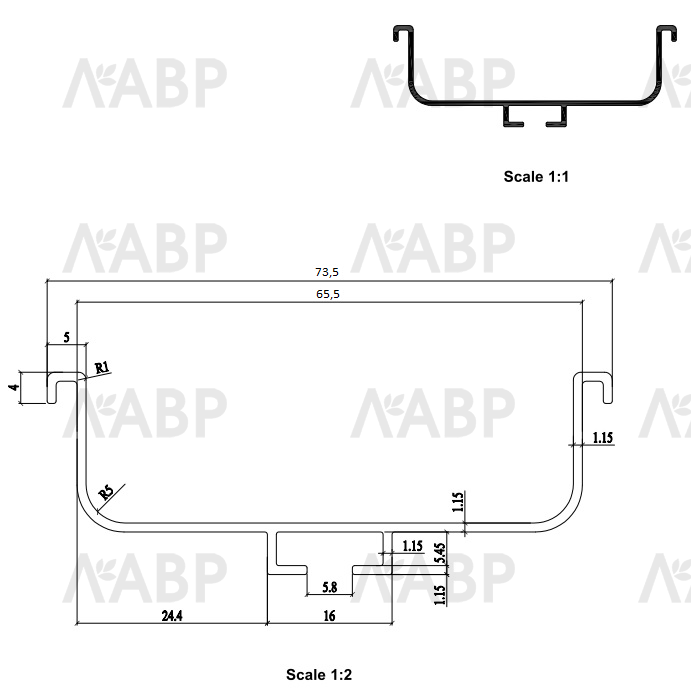 Горизонтальный С- профиль монтируется между рядами ящиков, обеспечивая выдвижение ящиков, распологаемых как над профилем, так и под профилем.