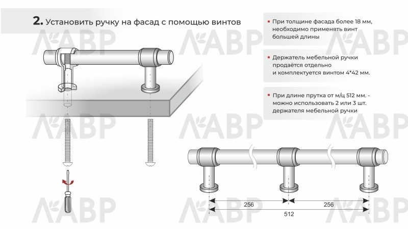 В комплект входят: держатель HOLD RN004 и крепёжный винт 4*42 мм, подходящий для установки на фасады 16-18 мм.