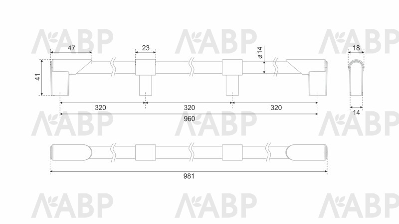 В модели с МЦ 960 мм дополнительно предусмотрены 2 средних держателя, место установки которых выбирается индивидуально в зависимости от удобства использования ручки.