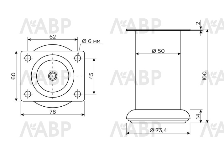 Опора мебельная нерегулируемая цилиндрическая 50*100мм хром А174