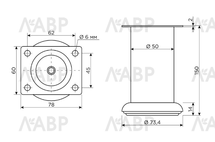 Опора мебельная нерегулируемая цилиндрическая 50*150мм хром А174