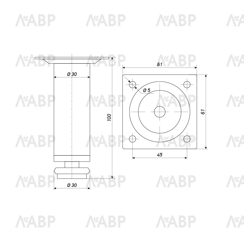 Опора мебельная регулируемая цилиндрическая 30х100мм хром