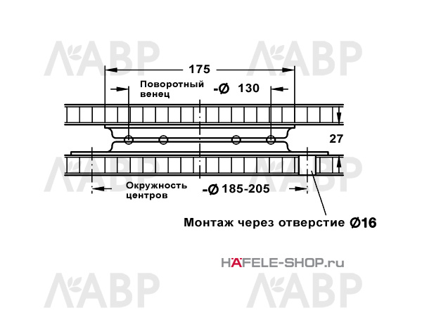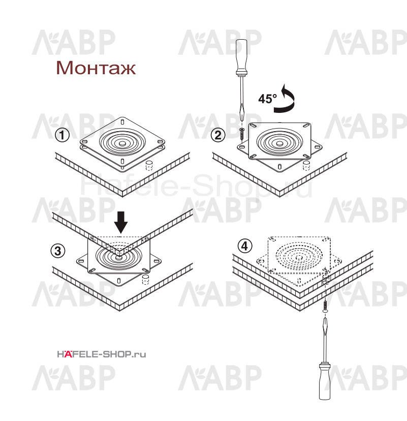 площадка поворотная Hafele 175*175*25мм, 180кг/646.15.014