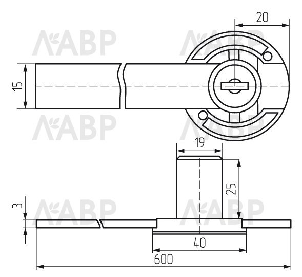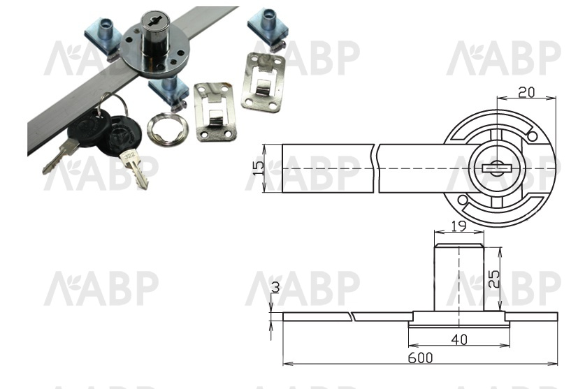 Замок центральный боковой на 3 ящика D=20 мм