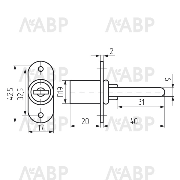 замок мебельный центральный, крепление на фасад 288.500 мм (3 ящика)