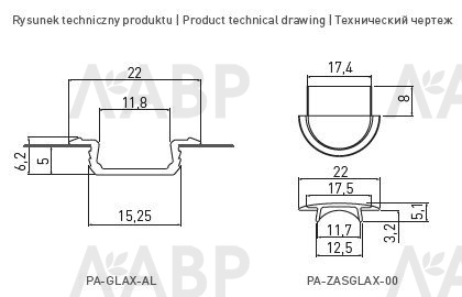 Заглушка врезного профиля 2206 GLAX для светодиодной ленты серебро PA-ZASGLAX-00 GTV