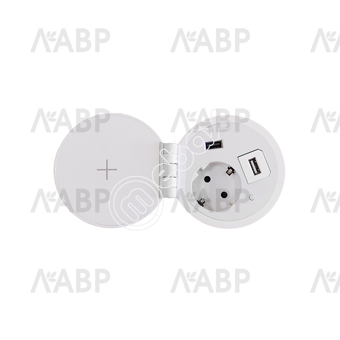 удлинитель врезной, беспровод. зарядка, 2*USB серебро-белый