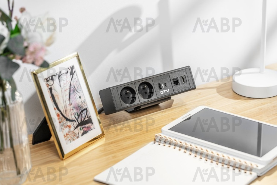 удлинитель GTV врезной BAR, кабель 1,5м, черный/AE-GM2SBAR-20