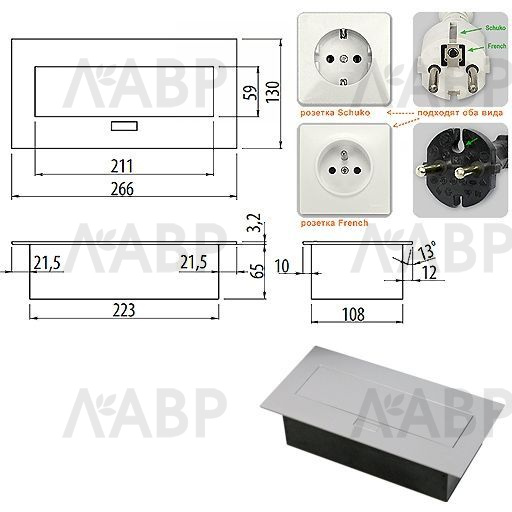 Удлинитель прямоугольный врезной 3 розетки AE-PB03GS-53 (Schucko) без провода -полезный функциональный элемент интерьера вашего офиса или комнаты. Устройство устанавливается в столешницу и в «спящем» состоянии скрыто от ваших глаз. Как только вам потребуется розетка, Вы легким нажатием откроете рабочую зону удлинителя и подключите компьютер, телефон, светильник или иной гаджет к электросети.