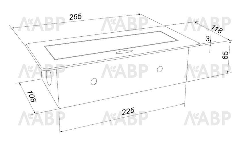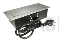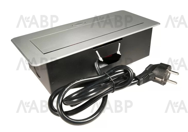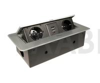удлинитель врезной прямоугольный 2 розетки, 2*USB, серебристый/LED10002.Q22