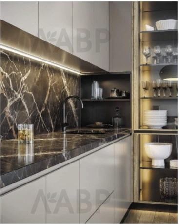 Светильник с наклонной проекцией луча выполнен в лаконичной стилистике. Отличное решение для подсветки рабочего места на кухне: свет падает непосредственно на столешницу и не слепит глаза. При установке вплотную к стене провод выводится вверх через специальный паз в торцевой заглушке. Очень простой накладной монтаж на скрытые клипсы. Сенсорный выключатель мягкого касания располагается за рассеивающим экраном с левой