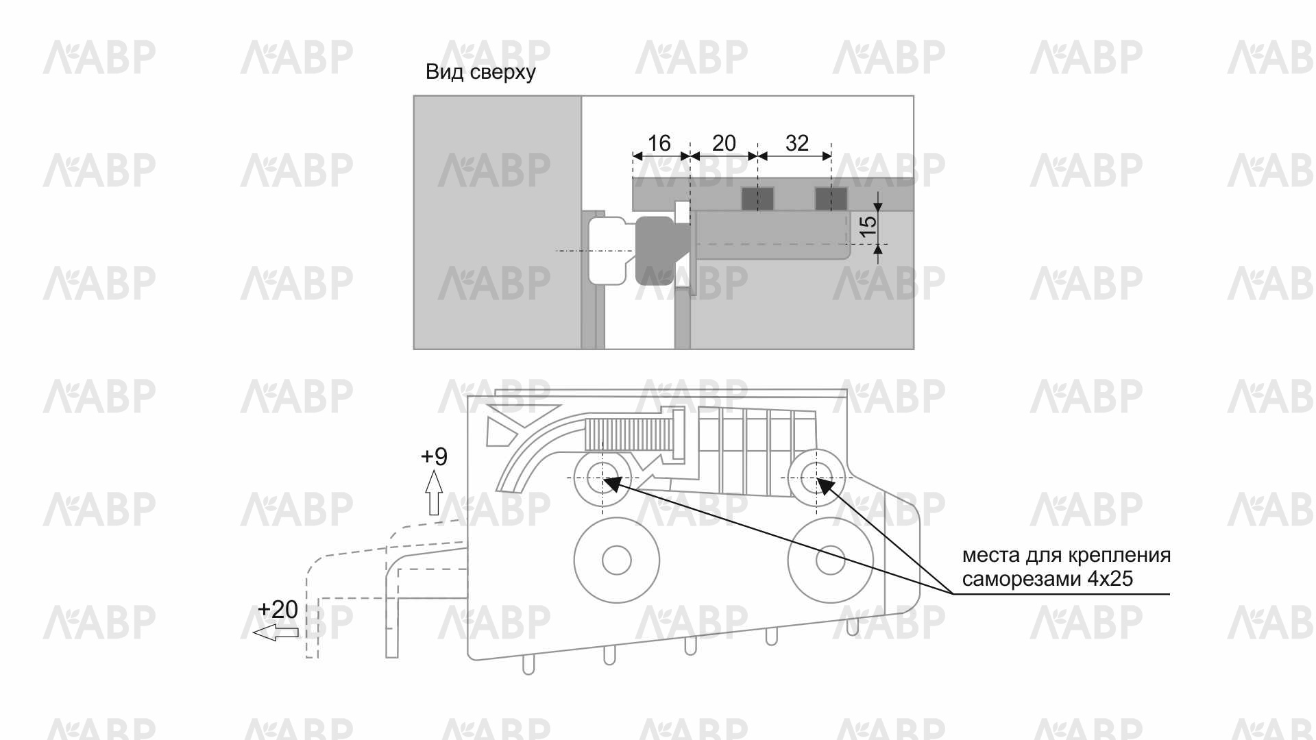 Крепёж и планка подбираются индивидуально в зависимости от материала мебельного корпуса и веса мебели.