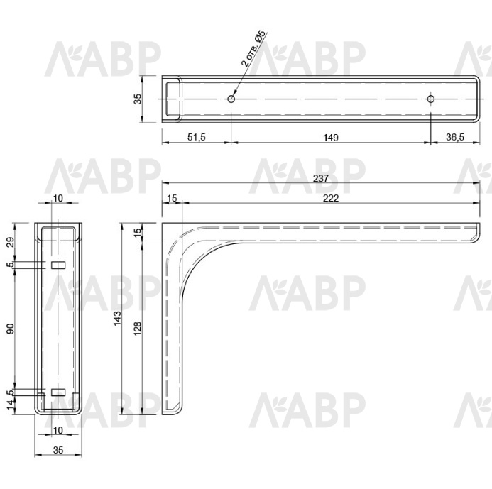 консоль с пласт. накладкой, 240 мм (237х143х35) белая до 20 кг / К (50)