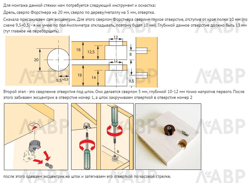 Например, в нижних полках с ограниченным доступом для затягивания эксцентрика снизу, - возможен вариант затягивания сверху.