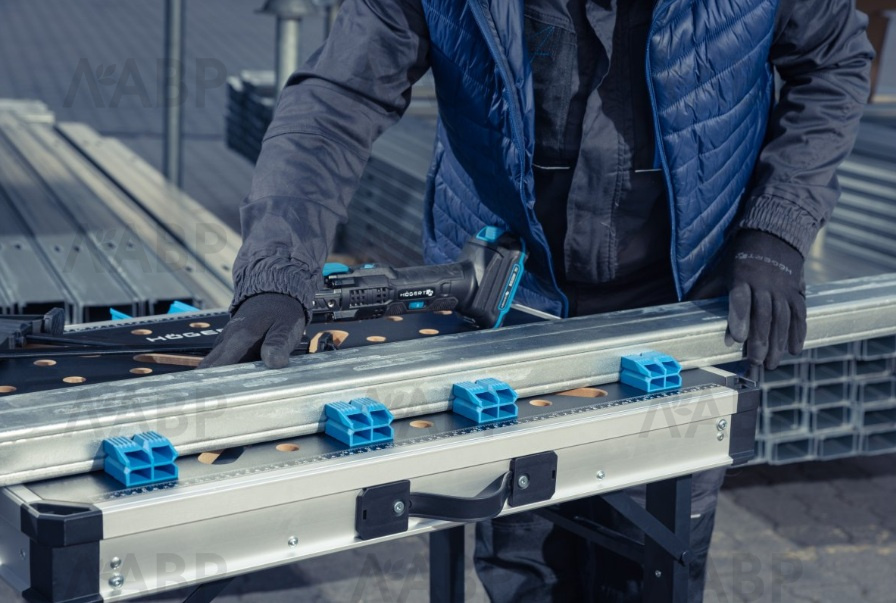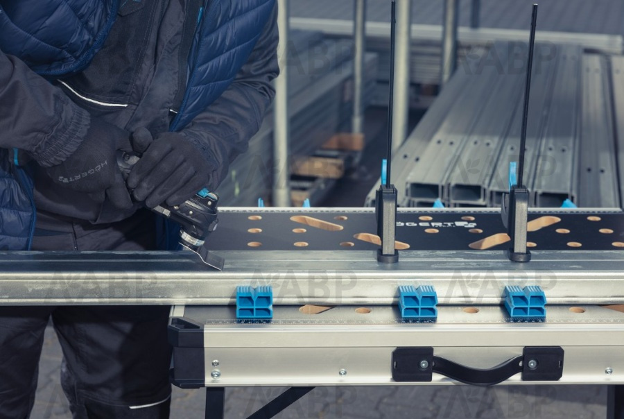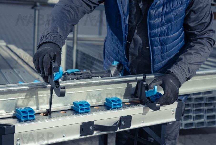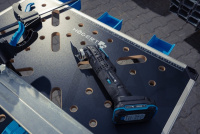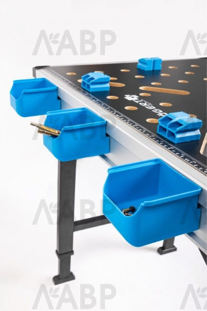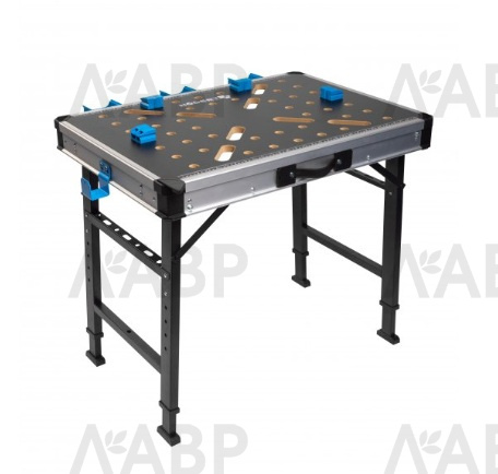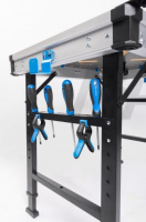 Многофункциональный складной верстак с монтажными отверстиями в столешнице из МДФ и 3 контейнерами обеспечивает универсальность и организацию рабочего места. Контейнеры и отверстия в боковых стойках обеспечивают легкий доступ к винтам, болтам, мелким инструментам и т. д. Благодаря 6-уровневой регулировке высоты стол подходит для пользователей любого роста и предпочтений. Специальные соединители позволяют соединить два стола вместе, чтобы создать большую рабочую поверхность. Использование двух столов в качестве эстакады и одновременно с использованием зажимов обеспечивает стабильную работу с длинными заготовками. Боковые крючки позволяют подвешивать длинные заготовки на двух столах. Упорные штифты позволяют надежно зажимать заготовки. Стол выдерживает нагрузку до 450 кг и подходит для действительно тяжелых работ. Столешница из МДФ прочна и влагостойка.