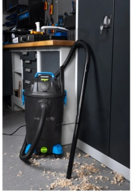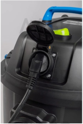 Оснащен вместительным 20-литровым контейнером с возможностью использования мешков для сбора пыли. Встроенная розетка позволяет подключать электроинструменты с системой пылеудаления, обеспечивая чистоту рабочего места непосредственно во время работы. Кроме того, пылесос может работать в режиме воздуходувки, что удобно для очистки рабочей зоны от мусора.