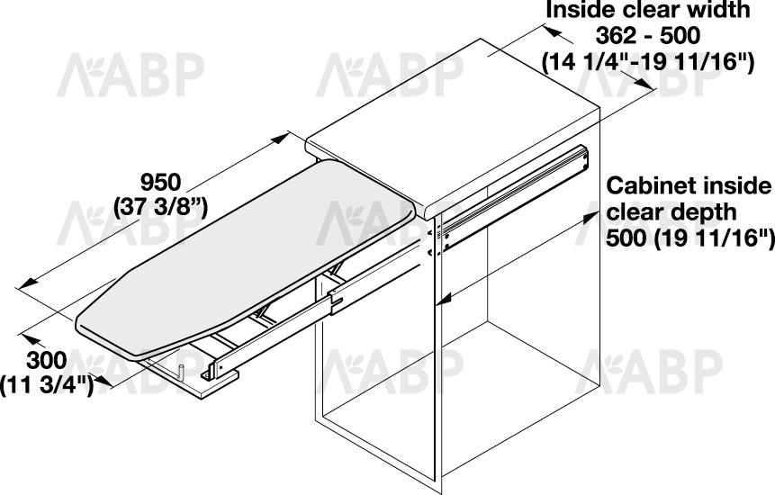 Гладильная доска выдвижная IRONFIX (монтаж в ящик) цвет алюминий 568.60.723 Hafele