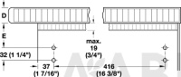 Для того, чтобы смонтировать встроенную гладильную доску на одинаковой высоте с рабочей поверхностью, необходимо учитывать размеры, указанные в дополнительном изображении.