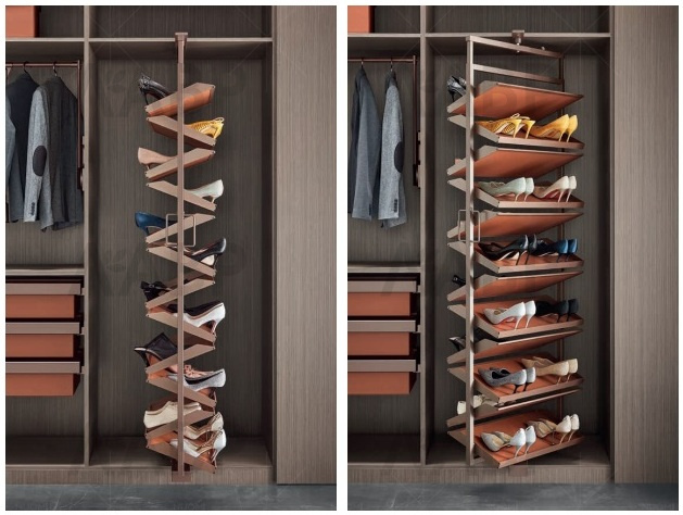 Поворотная обувница - для упрощенного доступа к Вашей обуви. В данной вариации она позволит хранить до 36 пар обуви с обеих сторон (18 пар с каждой стороны)