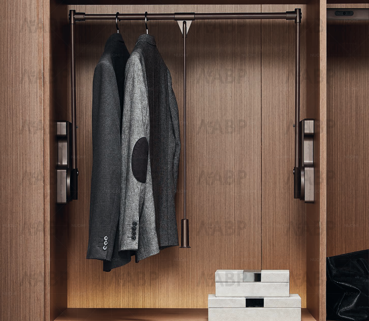 Механический пантограф нужен для размещения в верхней части шкафа, чтобы удобно доставать с него повешенные вещи нужно просто потянуть за ручку, пантограф опустится и зафиксируется. Чтобы его поднять в исходное положение просто снимите его с зафиксированного положения и доводчик сделает все за Вас.