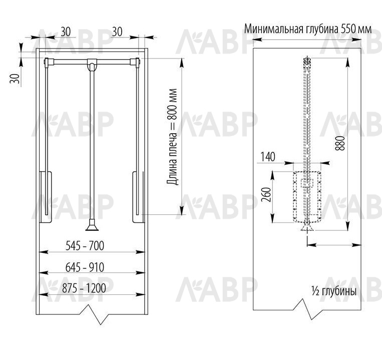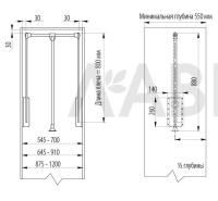 Телескопическая штанга перед установкой в шкаф регулируется в пределах 83-115 см.