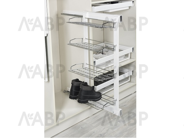полка для обуви выдвижная 4-х уровневая STARAX, левый, белый/S-6741-W