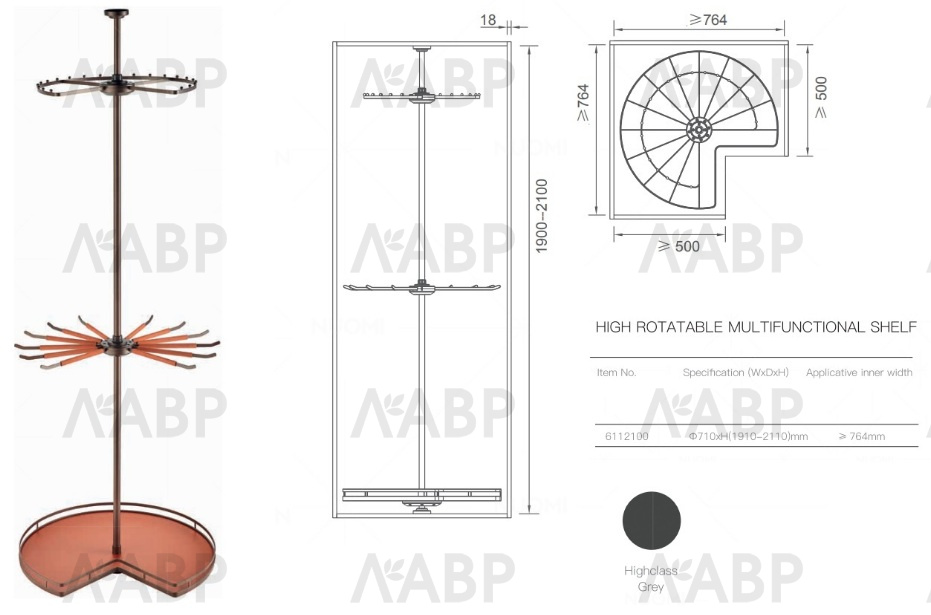 Nuomi/поворотная система хранения на 360 грудусов Ralphie Φ710*H(1910-2110)mm серый /6112100