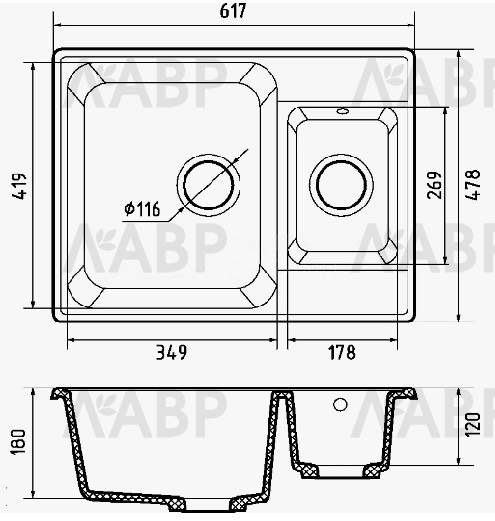 мойка кварцевая QUARZ 09 черный 617*478*180мм(без сифона)