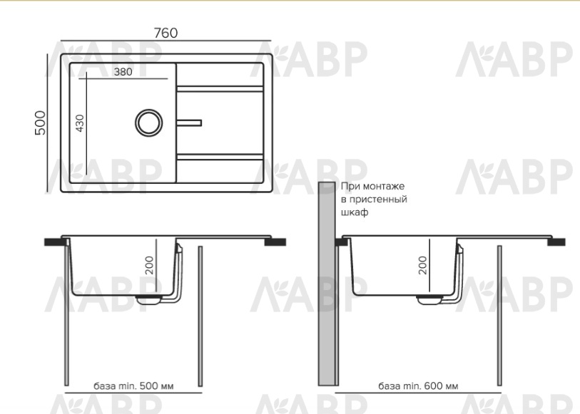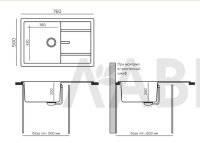 Размеры мойки (ШхДхГ): 500х760х216 мм.