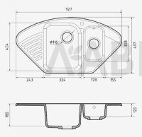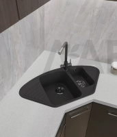 GRANFEST Мойка QUARZ 14 угловая 1,5-чаши 930*500мм черный арт.GF-Z