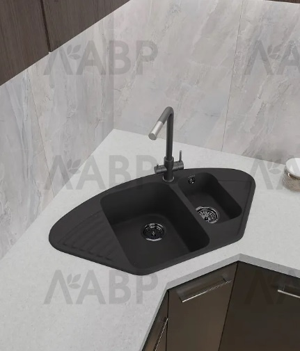 мойка кварцевая угловая GranFest QUARZ 14, черный, 927*497*180 мм(без сифона)