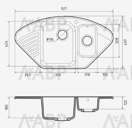 Размер чаши-2 178 х 308 х 120 мм