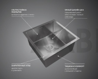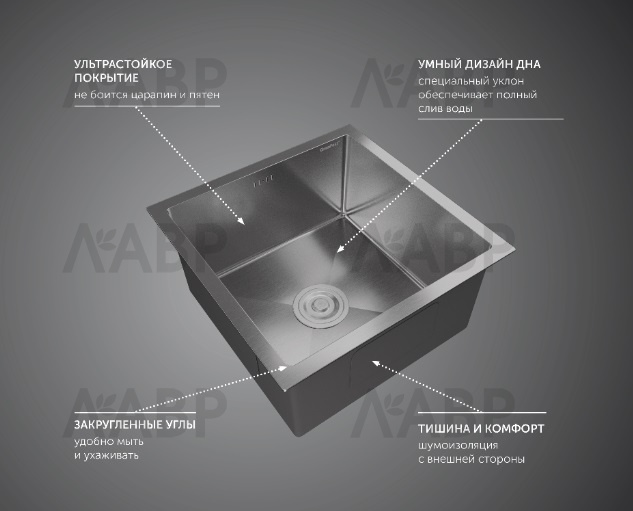 ✔ Отсутствие шума - за счет толщины металла, специального шумоподавляющего покрытия и полимерных накладок с обратной стороны мойки.