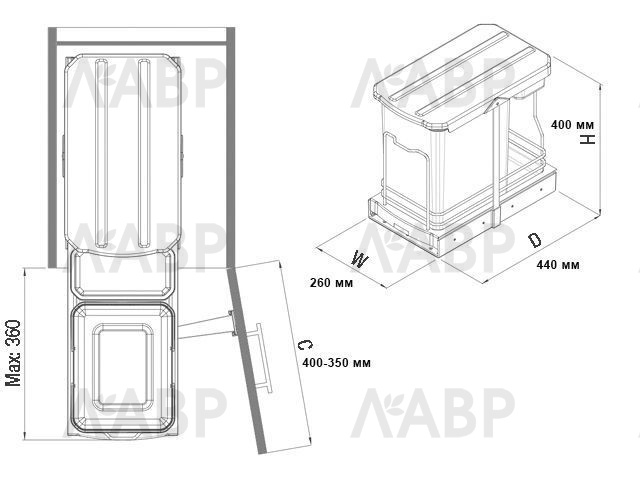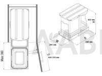 Характеристики: автоматическое открывание крышки при открытии фасада при закрывании дверцы фасада ведро плотно закрывается крышкой и возвращается в корпус.