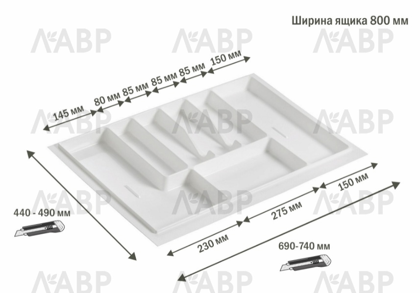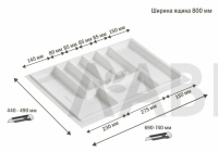 Лоток L 800 мм белый – кухонный аксессуар, необходимый практически в любом доме. Лоток позволяет удобно рассортировать внутри кухонного ящика ложки, вилки, ножи и другие постоянно используемые столовые приборы. Лоток специально подбирается под размеры конкретного ящика стола или кухонного гарнитура.