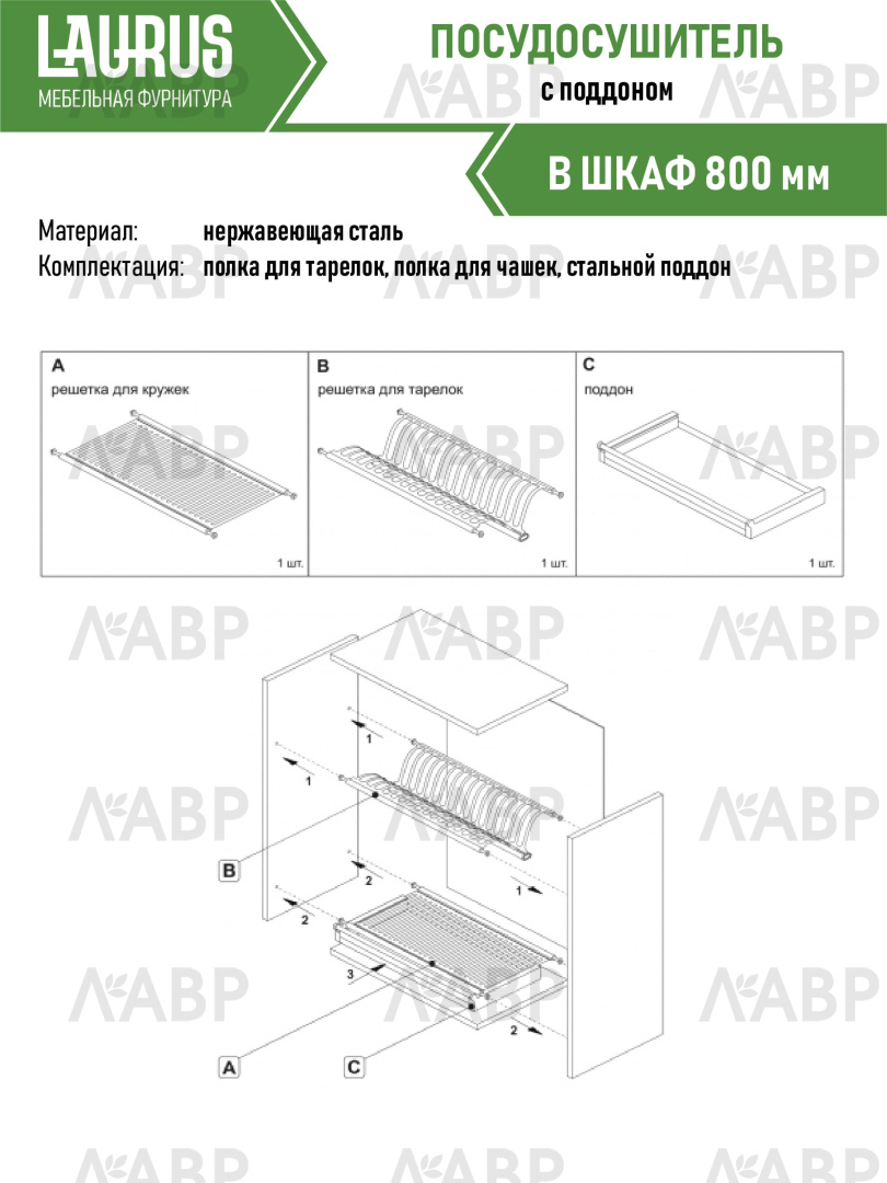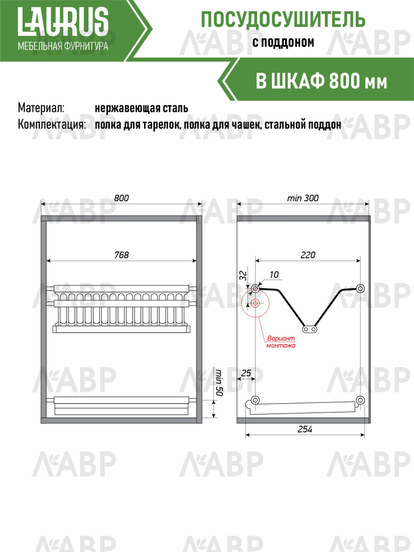 Посудосушитель 800мм нержавеющая сталь с поддоном