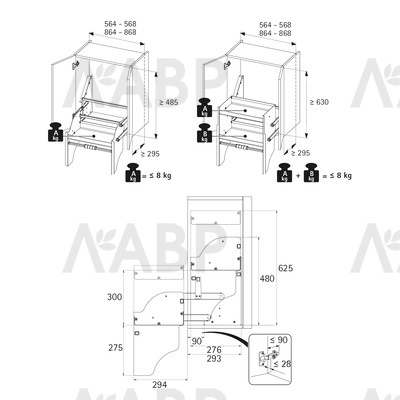Хеттих/механизм для опускания полки Arti 600мм, 1 уровень, антрацит / 9382270