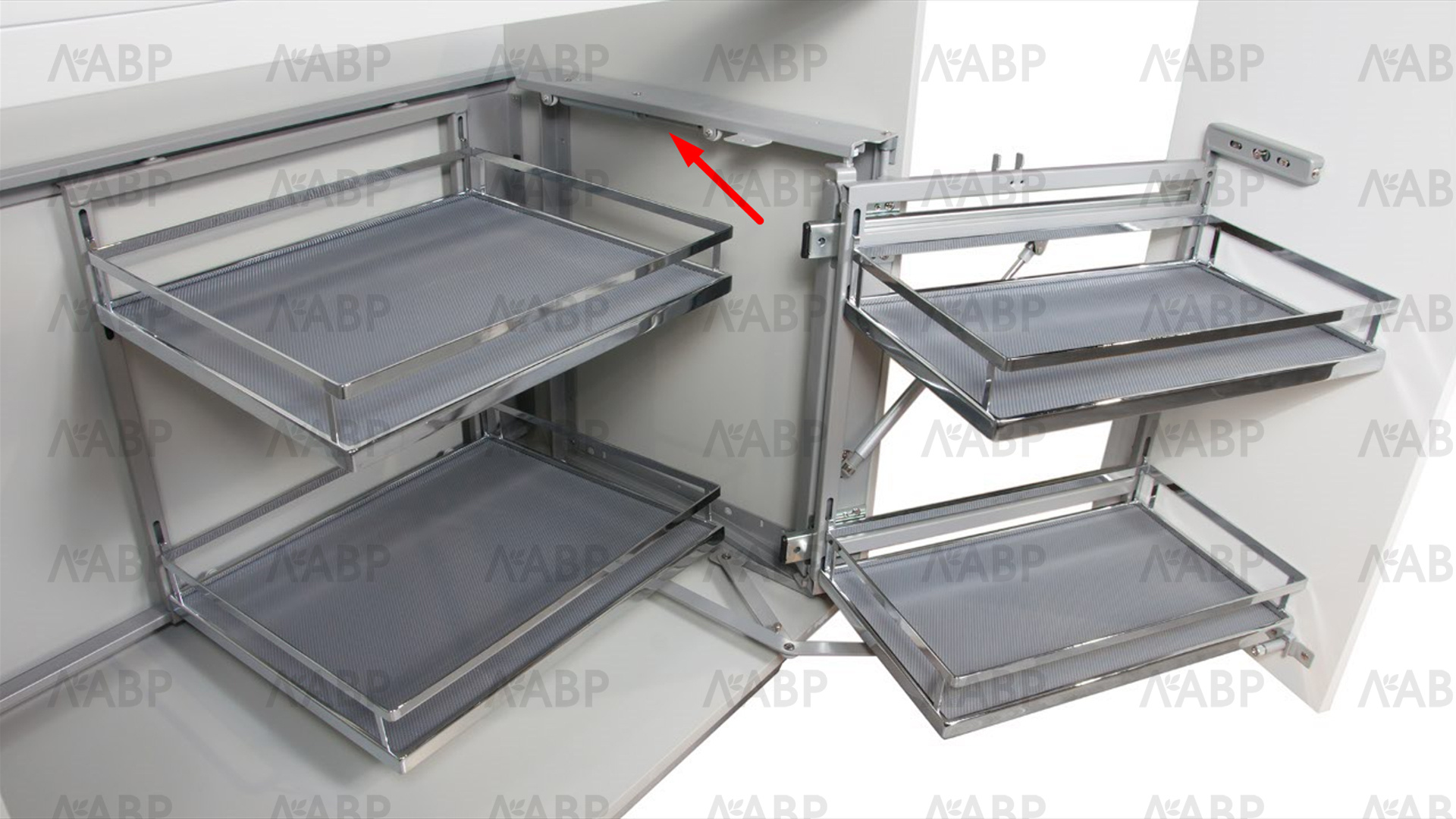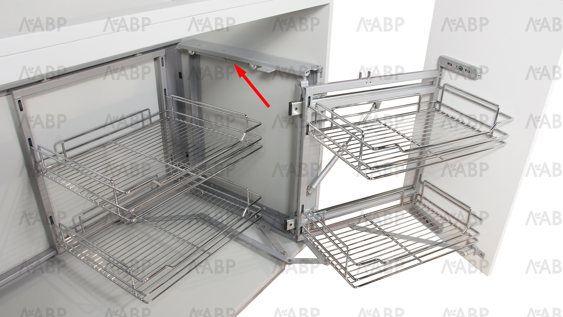 Устанавливается в верхней части рамы внутри корпуса и выполняет функцию амортизатора при закрывании фасада.