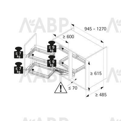 Хеттих/рама для выдвижной системы GORO, ширина двери 600 мм, цвет антрацит, левая /9382259