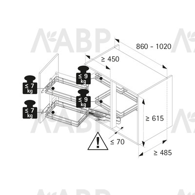 Хеттих/рама для выдвижной системы GORO, ширина двери 600 мм, цвет антрацит, правая /9382260