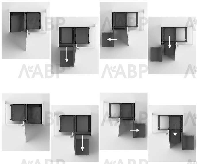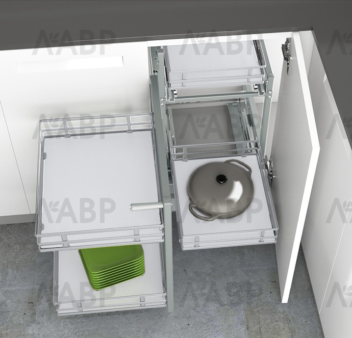Угловая система выдвижения для монтажа за распашной дверью