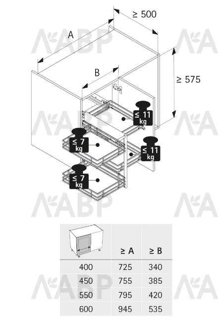 Для угловых шкафов с шириной передней панели 400,450,500 или