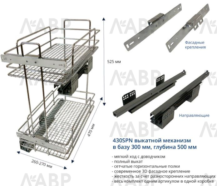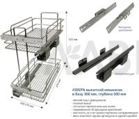 корзина выдвижная 300мм, доводчик, 2 яруса, бокового крепл, хром Kalibra