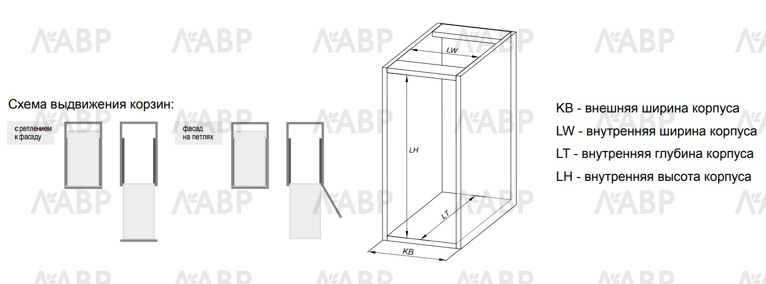 Толщина боковой стенки шкафа: 16 или 19 мм(компенсация толщины боковых стенок для 16 мм, в комплекте).