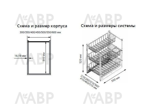 Выдвижные корзины устанавливаются в кухонный шкаф.