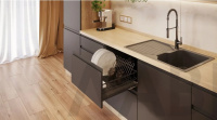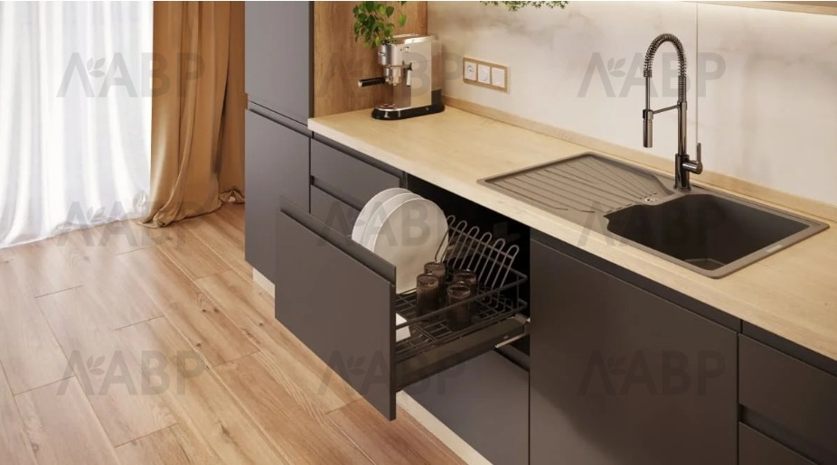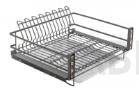 Сушилка выкатная для посуды в нижнюю базу GTV MOVIX PRO, 600 мм с креплением фасада, с поддоном, без направляющих, антрацит - выдвижная сетчатая емкость, устанавливаемая в модуль кухонного гарнитура. Используется для сушки и хранения посуды, извлекается из шкафа и убирается обратно за счет шариковых направляющих полного выдвижения.