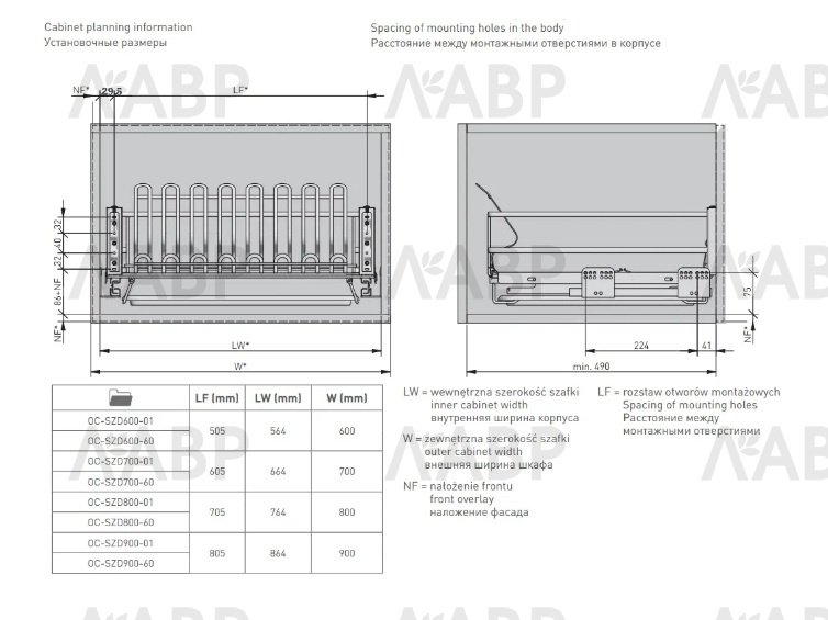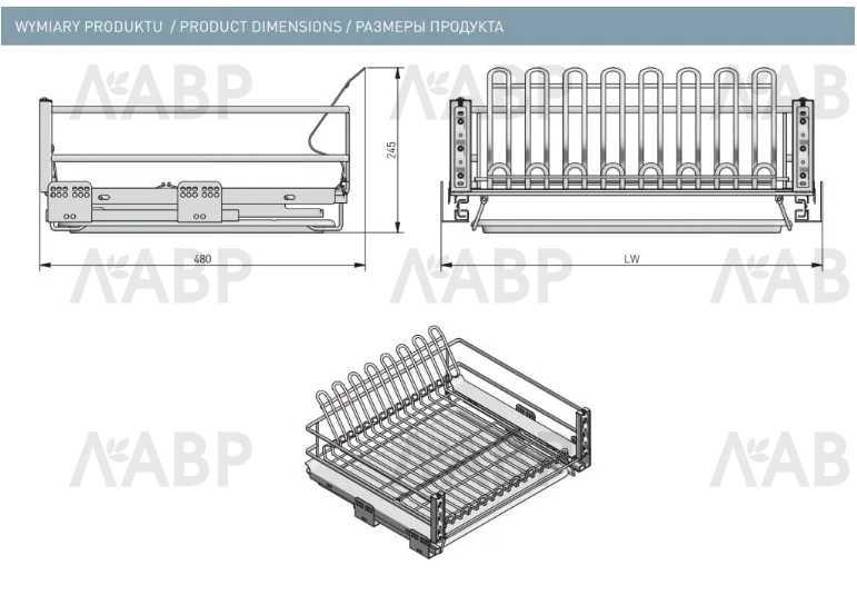 Шариковые направляющие скрытого монтажа L=450 мм в комплект не входят и приобретаются отдельно. Обращаем внимание, что к данной сушилке подходят только специальные фирменные направляющие GTV, артикул производителя - PB-OC450BO