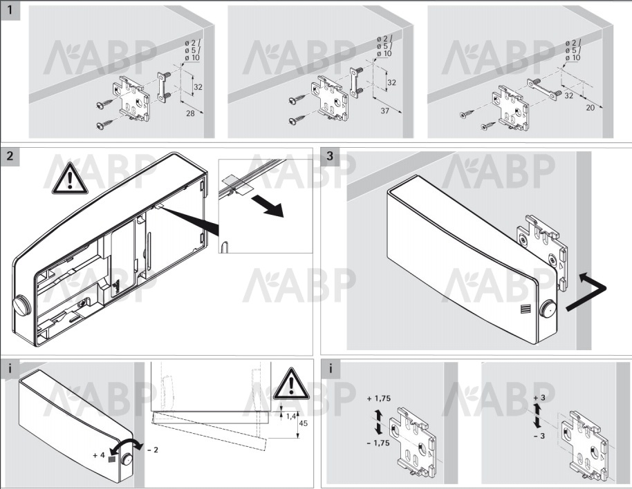 Большой диапазон регулировки + 4 / - 2 мм.