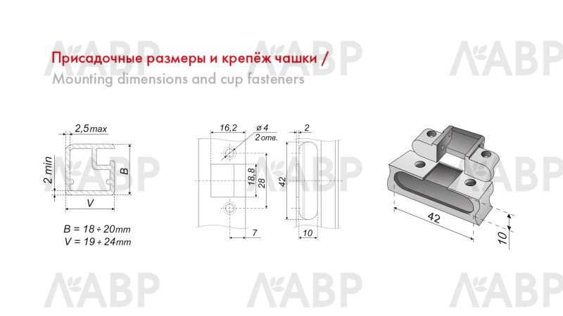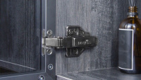 Модель быстрого монтажа Clip-on, имеет регулировку фасада в трёх плоскостях (по глубине, горизонтали и вертикали). Удобная регулировка по высоте и глубине в одно действие осуществляется при помощи эксцентрикового винта, встроенного в корпус петли. Регулировка фасада по горизонтали доступна при помощи винтов на планке.