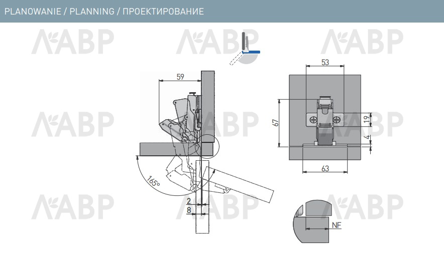 Петля GTV ZM-НСKT 165 градусов угловая самозакрывающаяся с планкой с евро - механизм для деревянных мебельных фасадов с широким углом открывания.